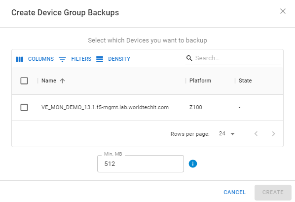 To take a backup, first select the device in the drop-down you wish to take a backup for.