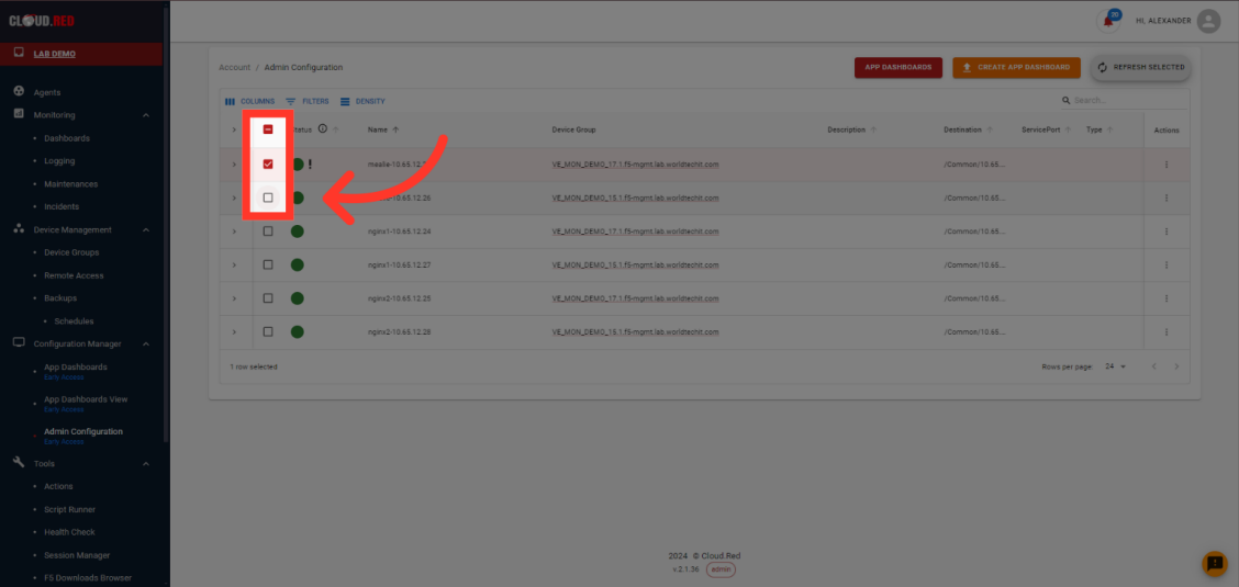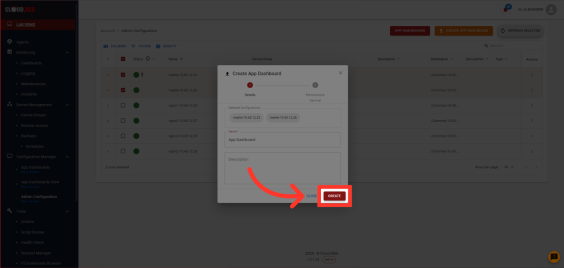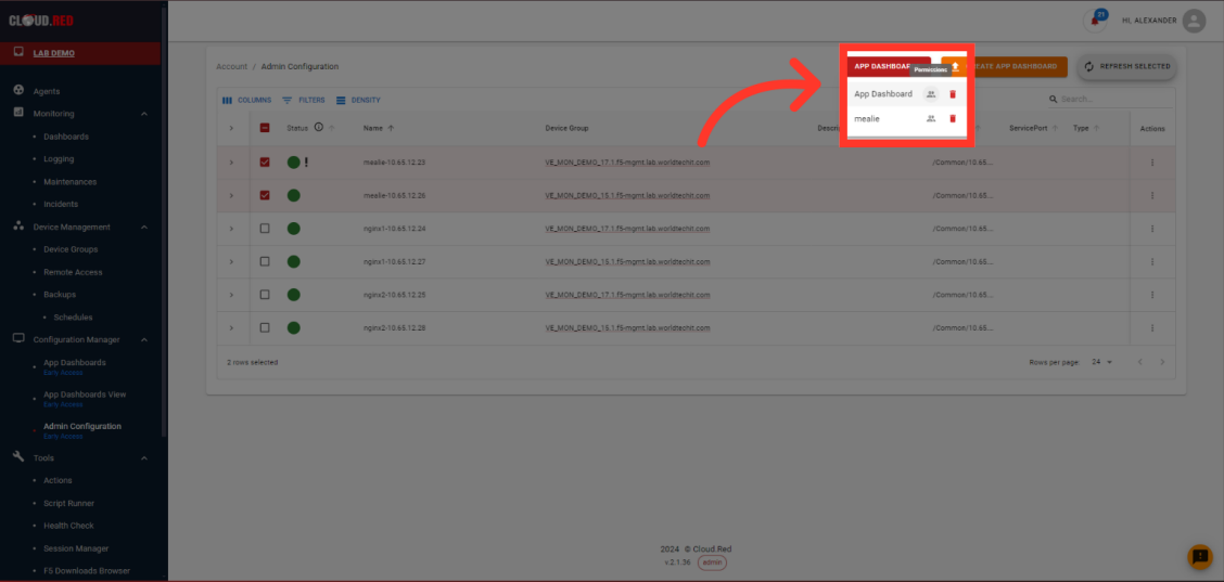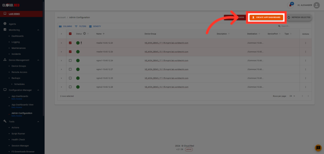 - To create a dashboard, select all VIPs intended to be included in the app dashboard. This can be one or multiple.