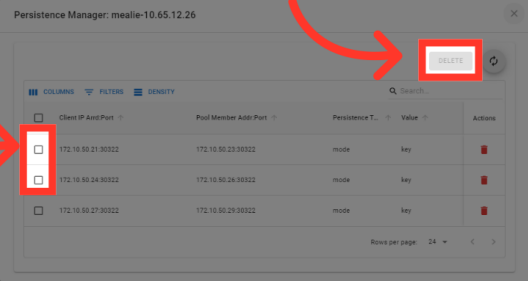 - Use the selection boxes on the left to remove multiple persistent connections at one time.