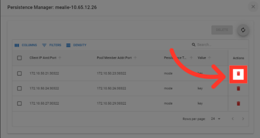 - To view the persistent connections of the Virtual IP, select the displayed persistent connections next to source address.