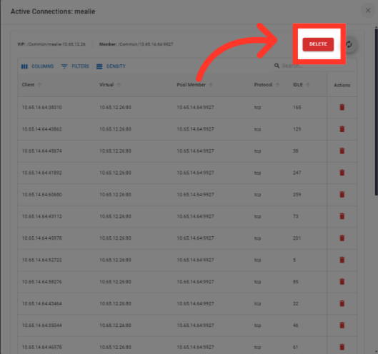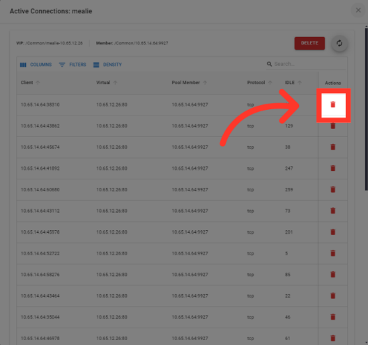 - Select the “DELETE” button in the top right to terminate all displayed connections.
