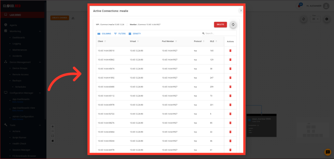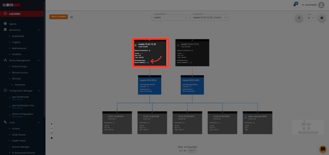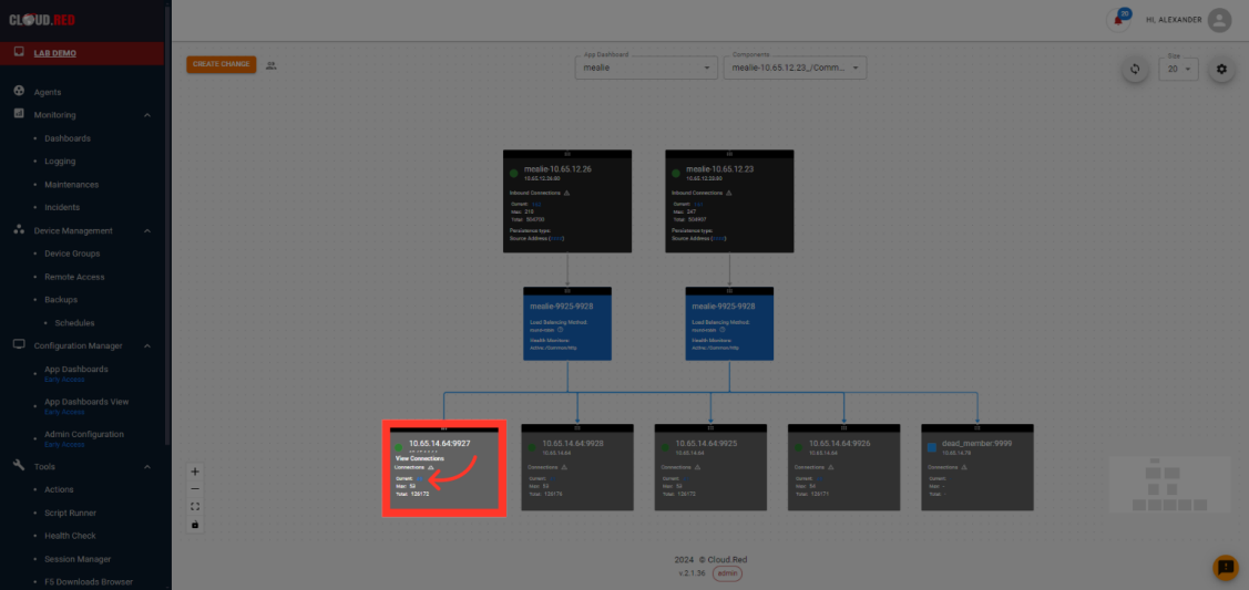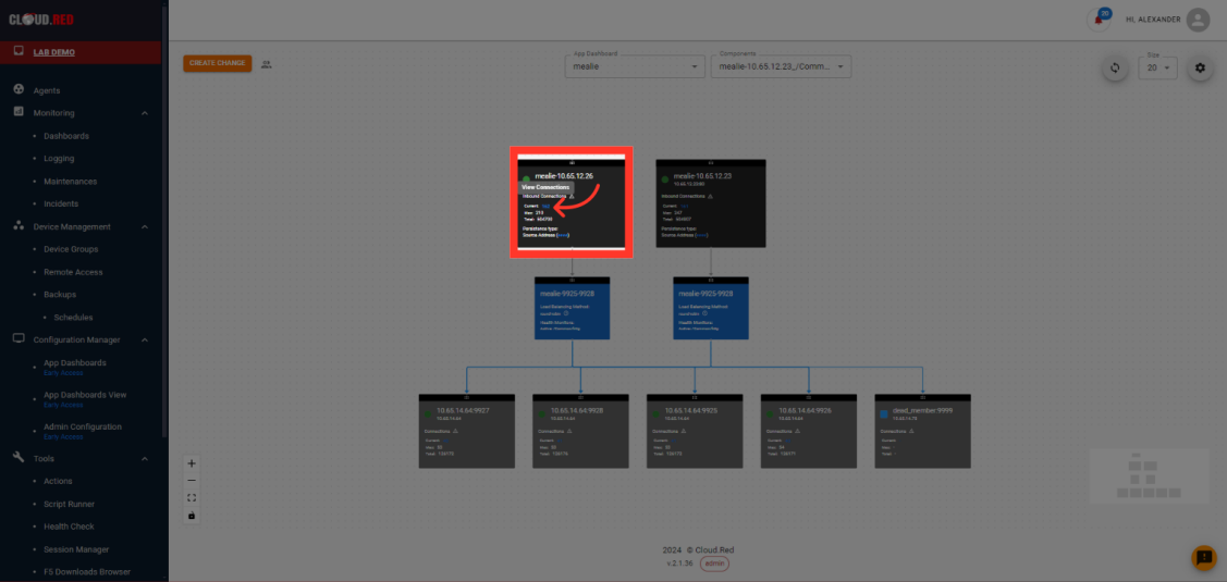 Users can quickly edit the connections of their applications for the entire virtual IP or for the individual Poll Member.- To view the connection of the virtual IP, select the displayed number of connections.