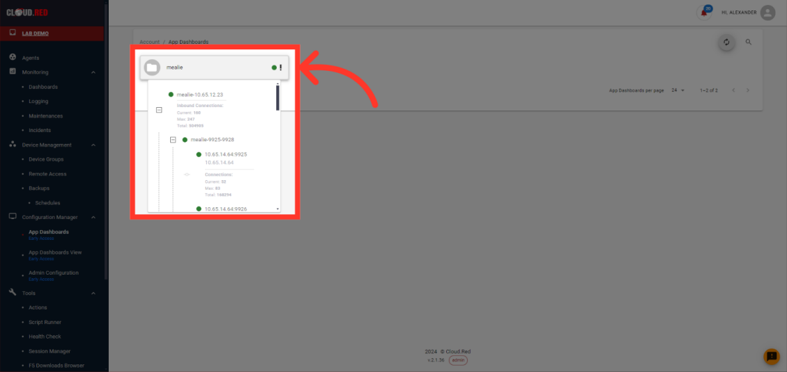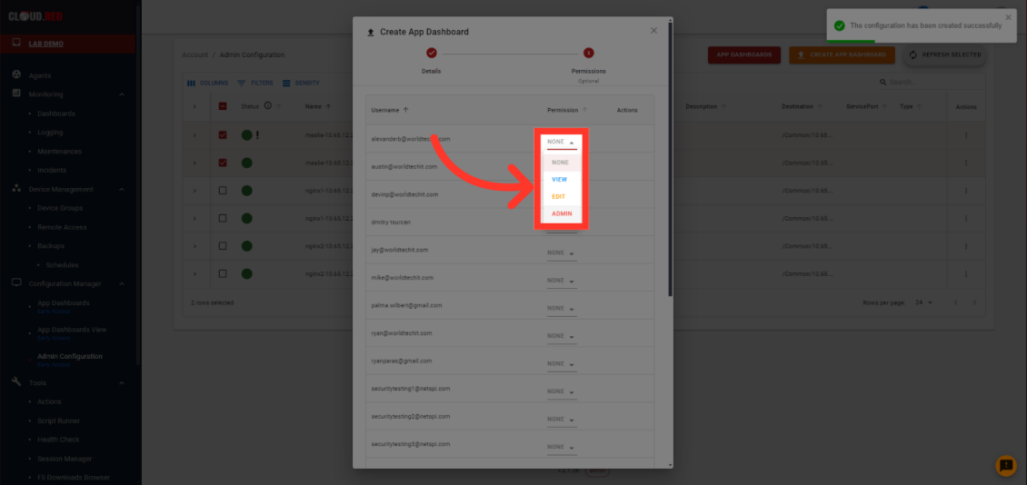 - After selecting a Dashboard, users can view all VIPs attached and have the capability to change it’s configuration.