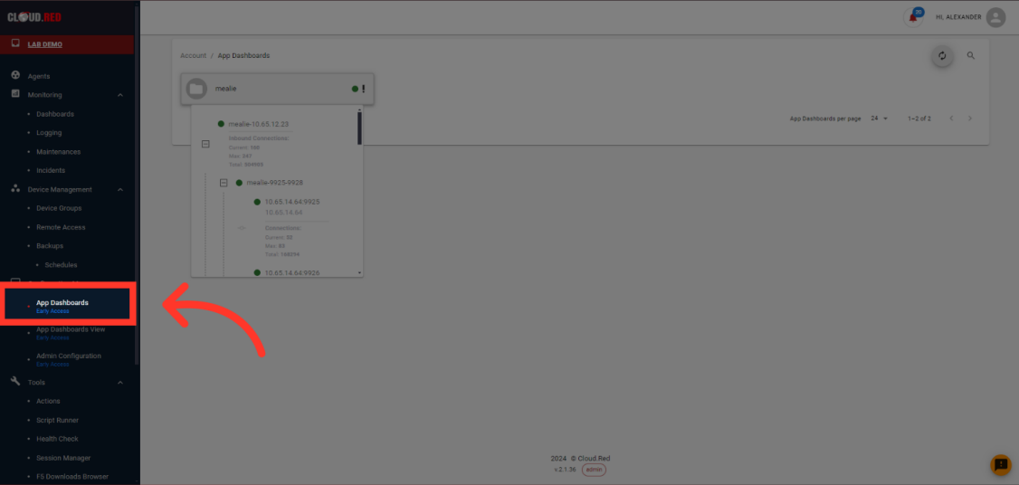 From the Application Dashboards, users have access to key information for their applications as well as granular control over key settings.- To use app dashboards, navigate to the “App Dashboards” Tab in the left-hand navigation.