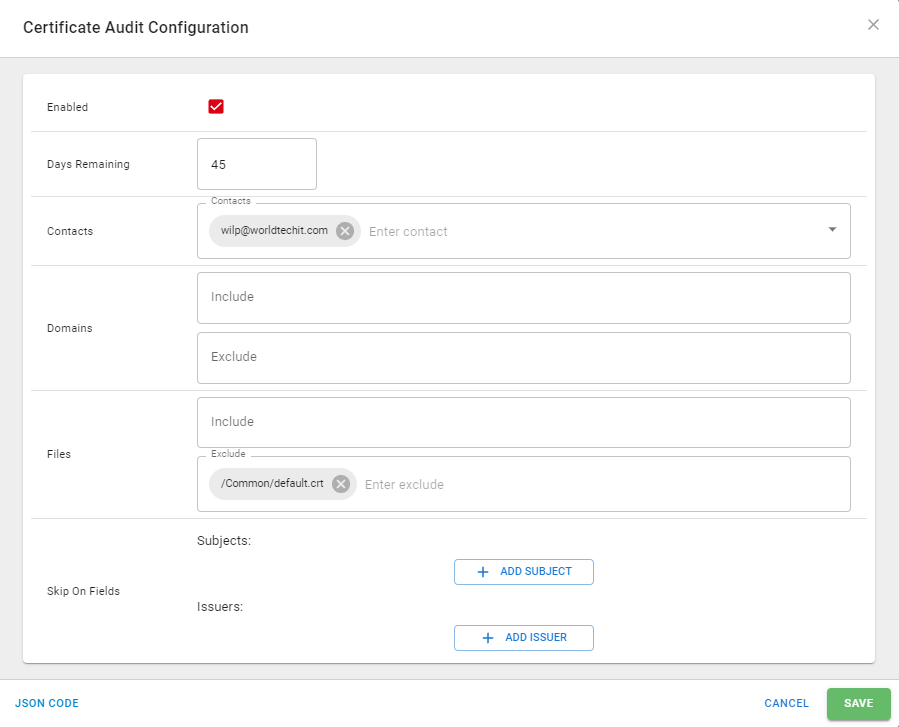 - Set the ‘Days Remaining’ for a certificate’s expiration to trigger an automated notification email
