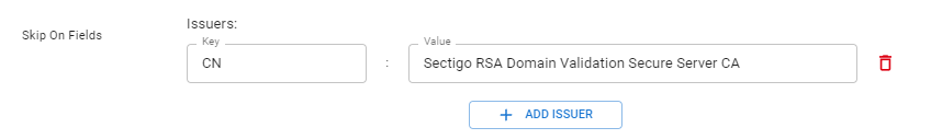 Example: To filter out certificates which have a issuer with common name “Sectigo RSA Domain Validation Secure Server CA”, the following entry would be added: