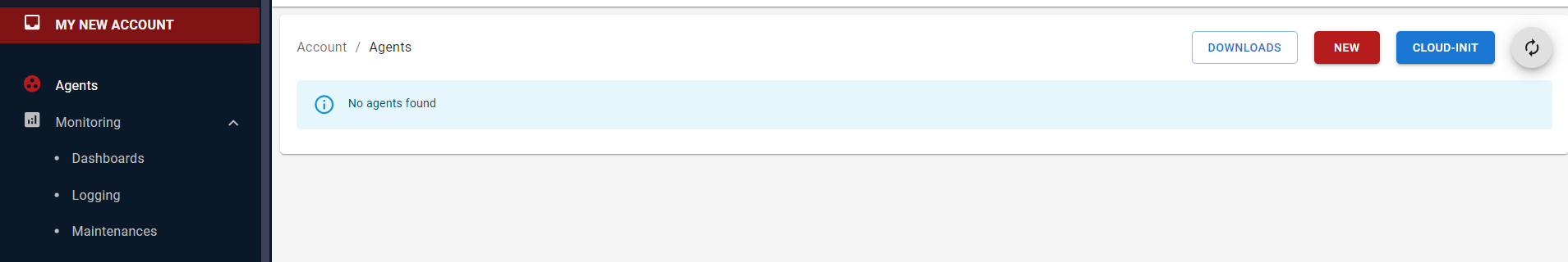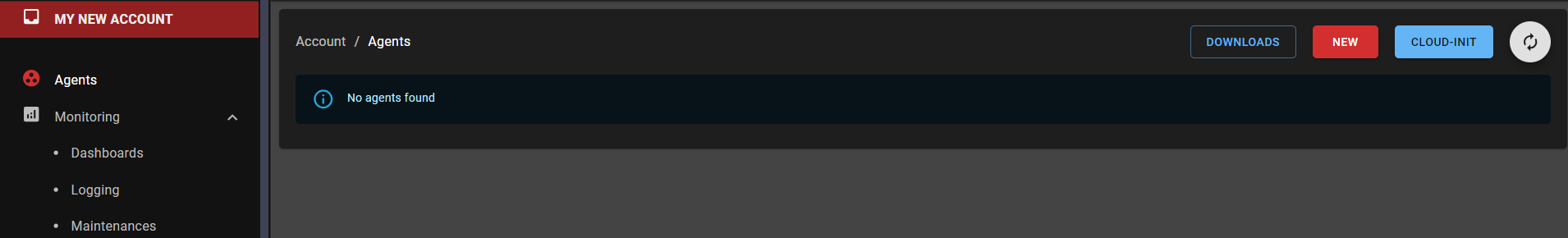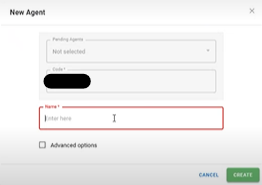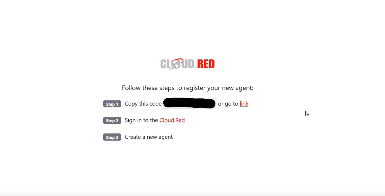 Copy the code displayed in the middle of the registration page seen in step 1.Go to Cloud.Red and navigate to the agents tab on the left-hand menu.