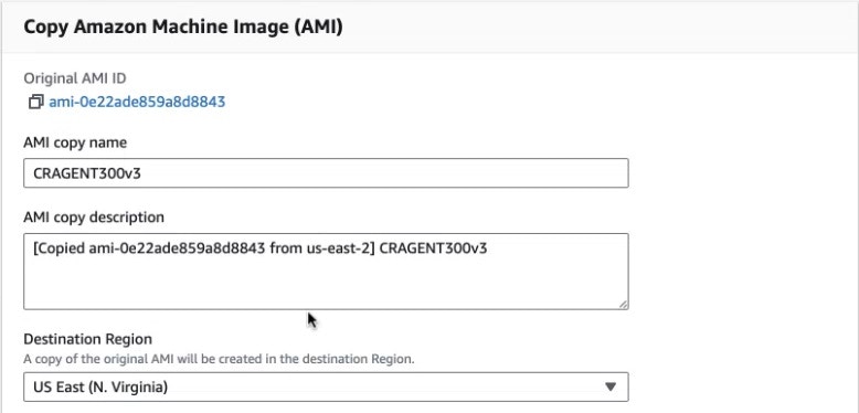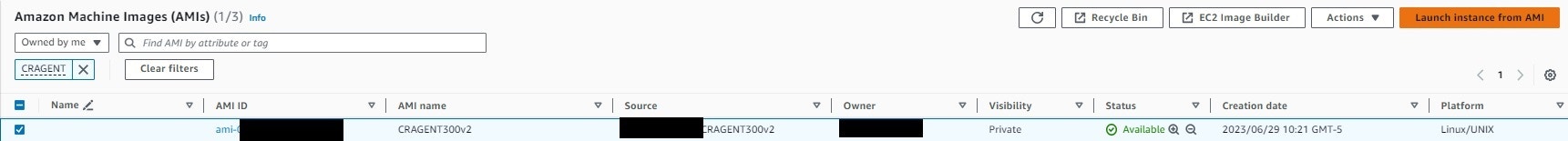 - Go to EC2 > AMIs, and select “CRAGENT300v3”