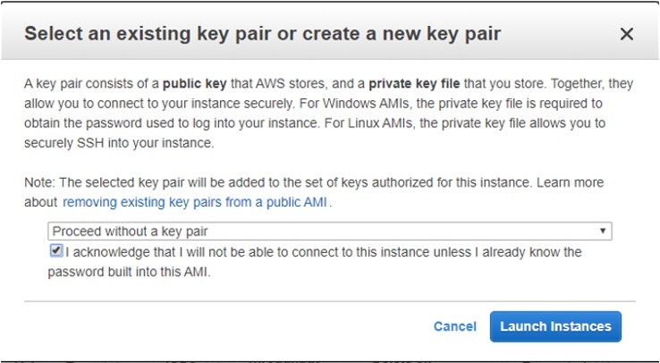 - When prompted, proceed without a key pair.