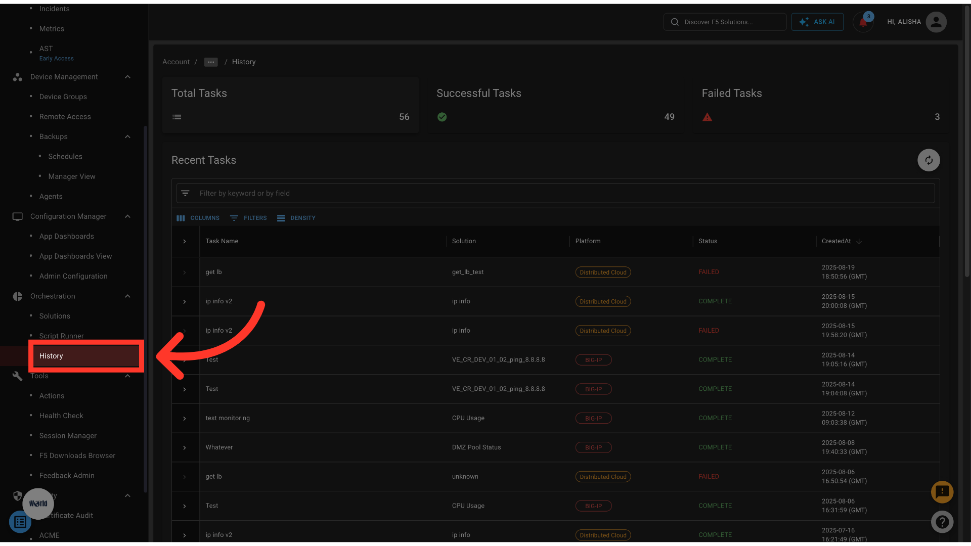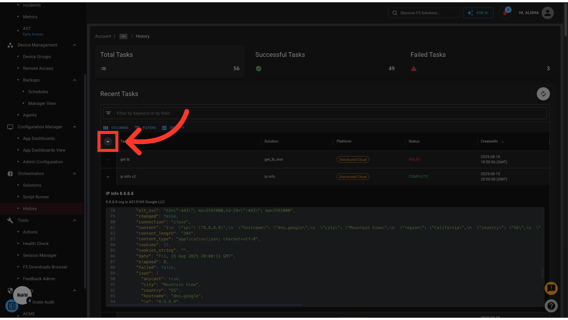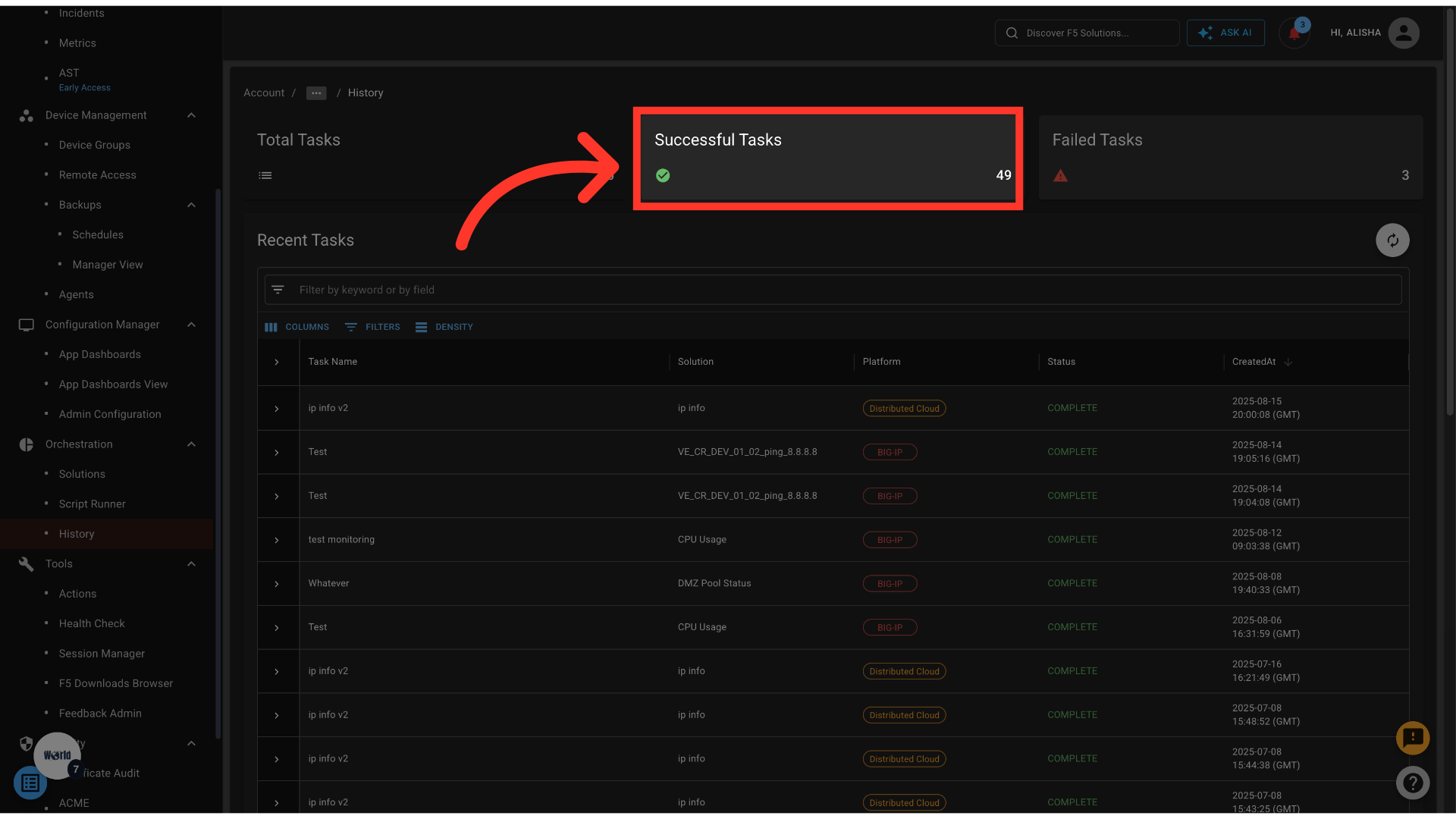 - Filter results to focus on successful or failed tasks